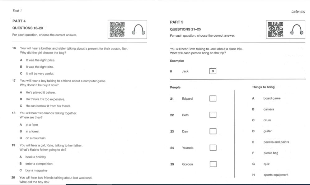 Bộ Cambridge A2 Key for Schools 1 (PDF + Audio MP3 + Answer Key) chính là lựa chọn tốt nhất để học sinh cấp 2 ôn tập và tự luyện tại nhà.