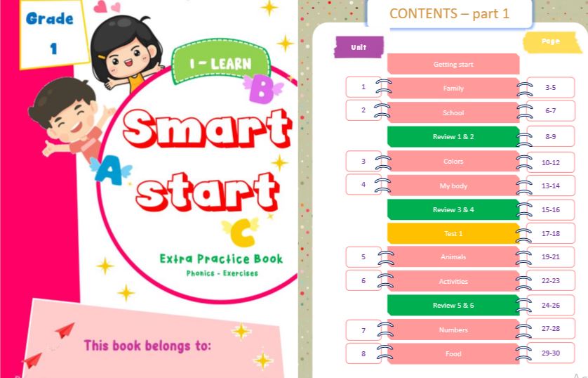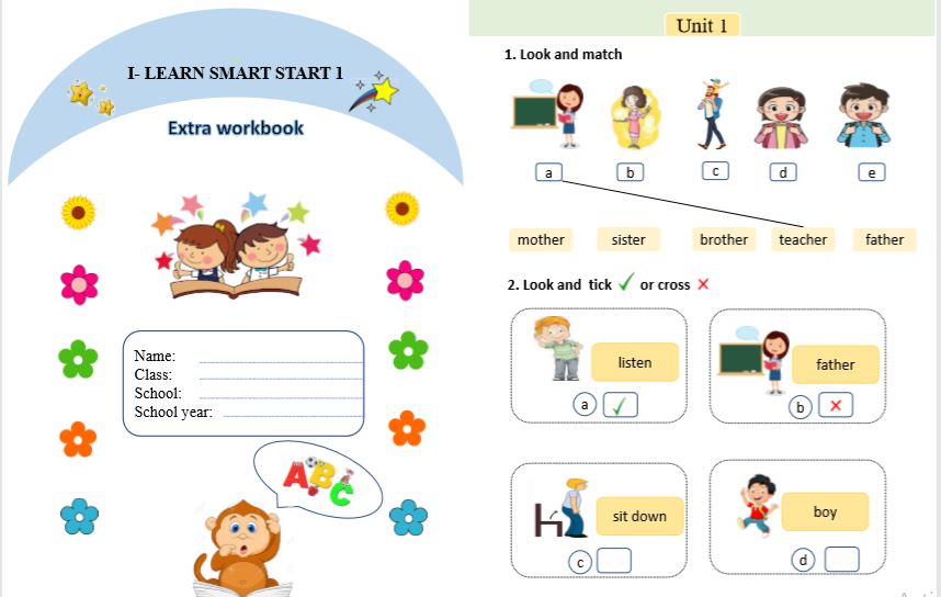 - Bám sát chương trình “I Learn Smart Start 1”: Nội dung của sách bài tập được sắp xếp theo từng Unit (bài học) tương ứng với sách giáo khoa “I Learn Smart Start 1”. Điều này giúp học sinh dễ dàng theo dõi, ôn tập và củng cố kiến thức một cách có hệ thống.