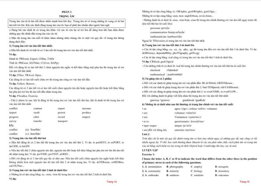 Hệ thống quy tắc nhận biết trọng âm dễ nhớ