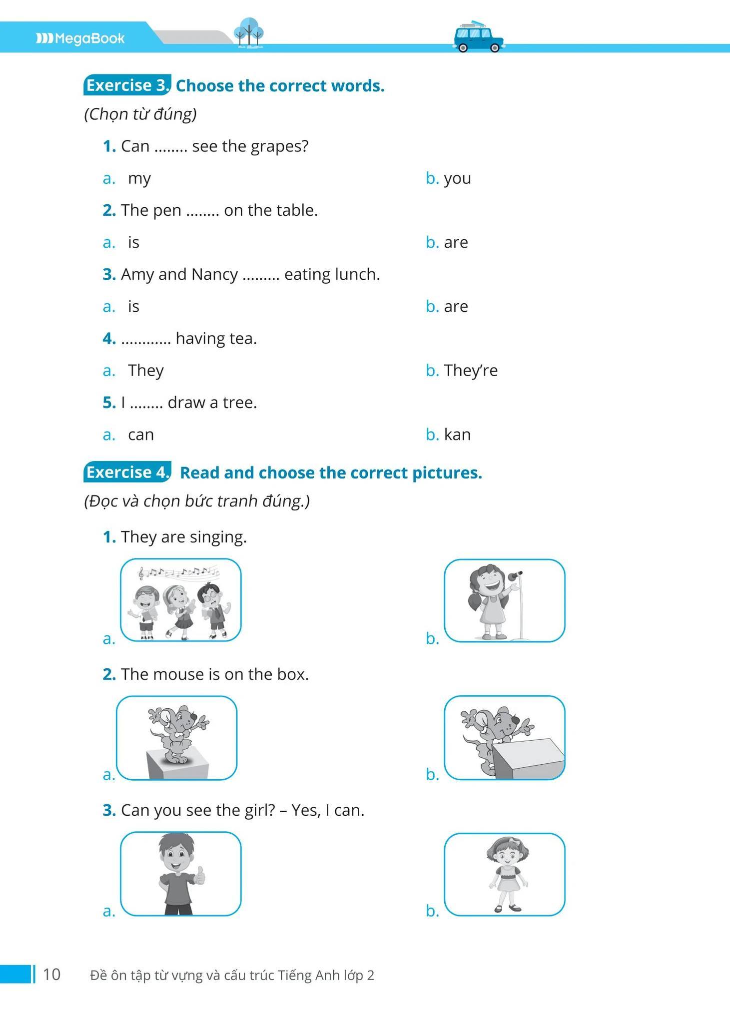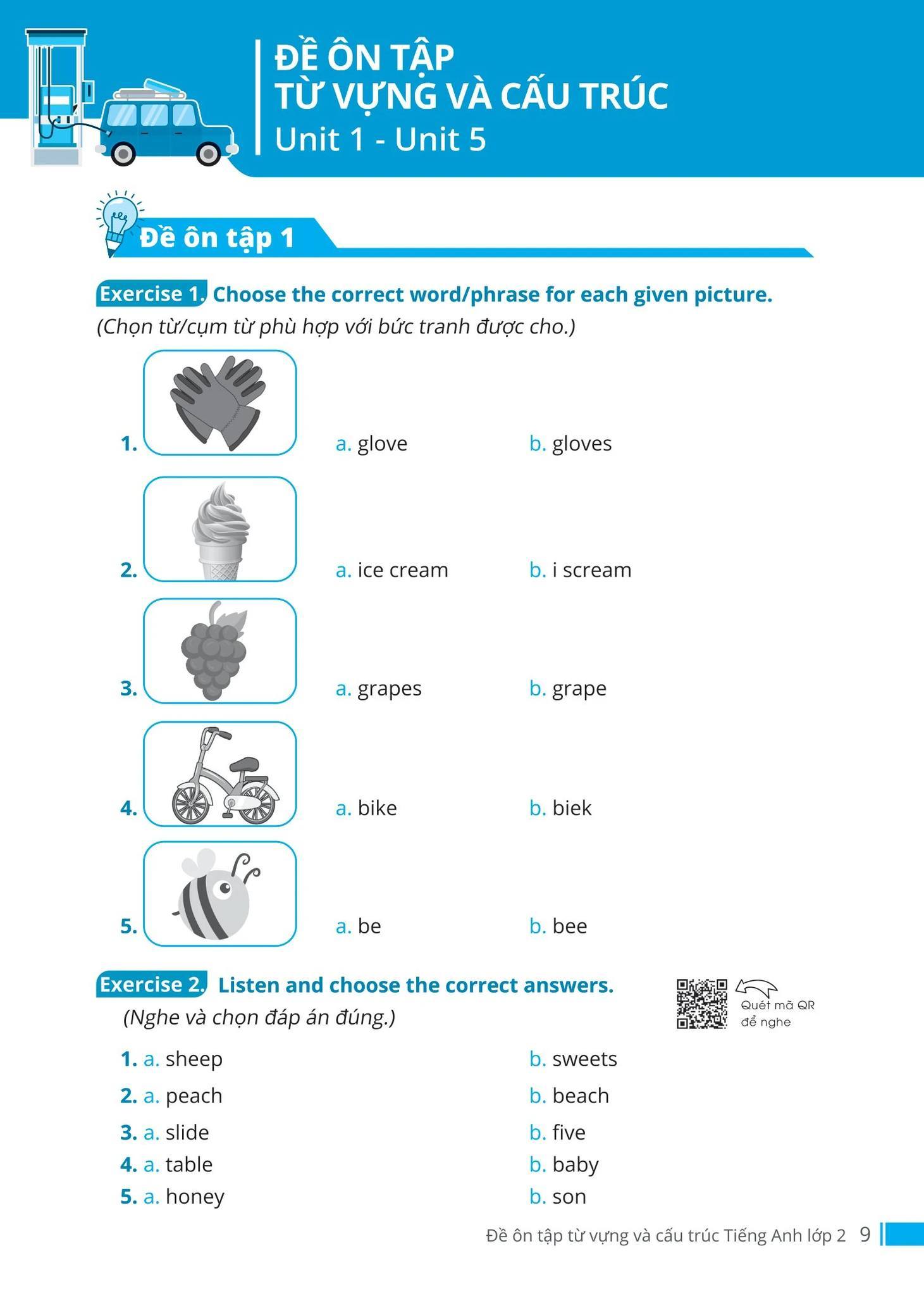 Nội dung nổi bật sách Đề ôn tập Từ vựng và Cấu trúc Tiếng Anh lớp 2: