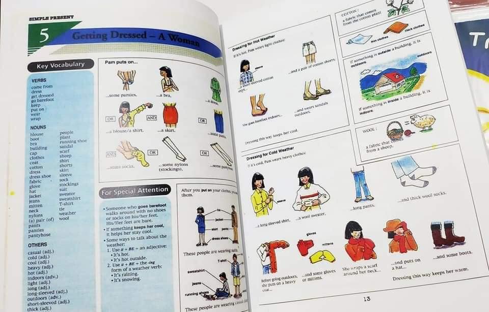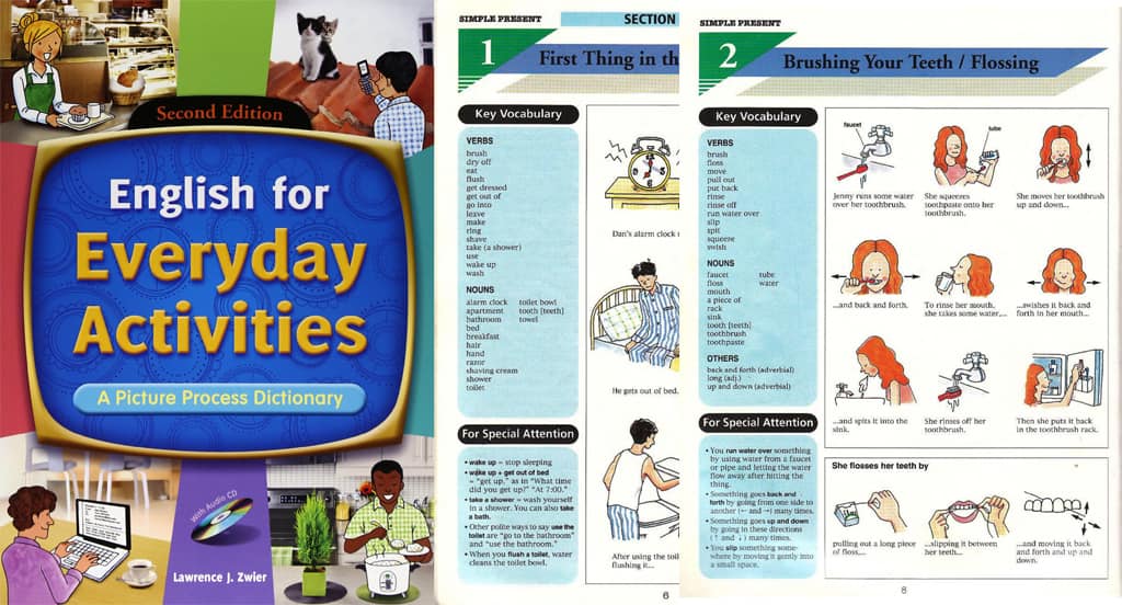 Mình chia sẻ với cả nhà một tựa sách đã được cô Trần Lan Hương review là rất hữu ích và thiết thực với ba mẹ đang đồng hành dạy con song ngữ nha. Sách gồm các chủ đề liên quan đến các hoạt động sinh hoạt thường ngày. Buổi sáng thức dậy thì bé sẽ làm gì, từ việc đánh răng, rửa mặt, chải tóc và thay quần áo, rồi chuẩn bị bữa sáng như thế nào … đến chờ xe bus, nấu cơm, dọn bàn ăn… đến cả cách cưa gỗ, sử dụng máy ATM,…