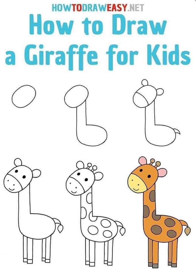 Ví dụ cách vẽ con hươu cao cổ theo các bước như sau: