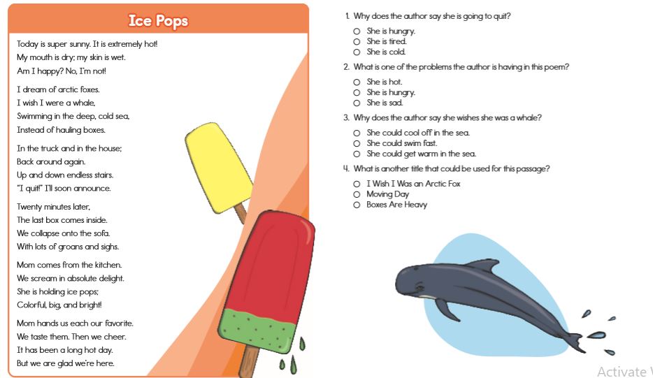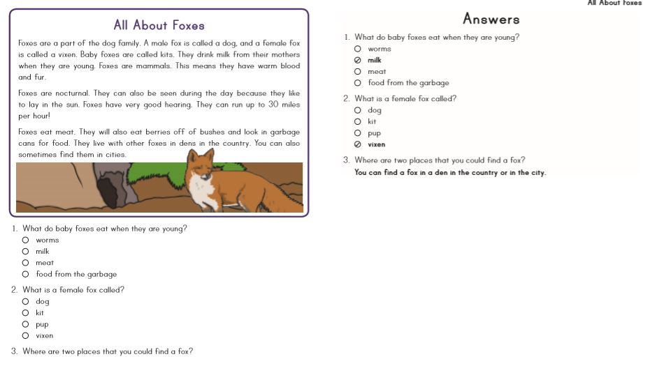 Sau mỗi bài đọc, học sinh sẽ làm 3–5 câu hỏi trắc nghiệm hoặc điền đáp án giúp:
