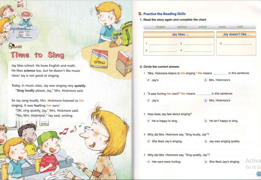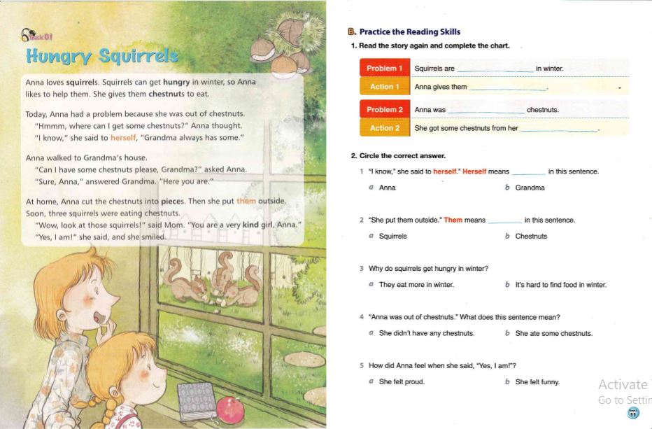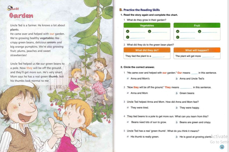 -Student Book: Gồm nhiều bài đọc ngắn, mỗi bài xoay quanh một chủ đề quen thuộc như trường học, gia đình, bạn bè, động vật, du lịch,…