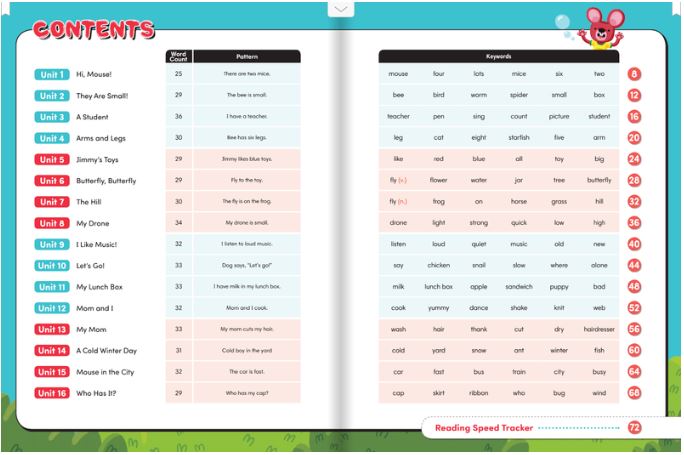 - Bài đọc: Mỗi bài đọc là một câu chuyện ngắn, với độ dài từ 50-100 từ. Các bài đọc được viết với ngôn ngữ đơn giản, dễ hiểu, phù hợp với trình độ của trẻ em ở độ tuổi từ 6-10 tuổi.