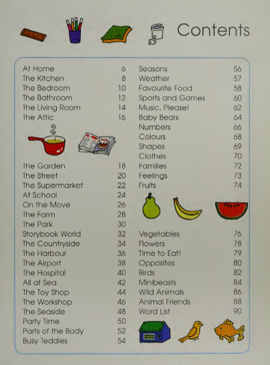 - Nó giới thiệu hơn 1000 từ thông dụng, được phân loại theo các chủ đề khác nhau như nhà cửa, đồ ăn, động vật, quần áo,….