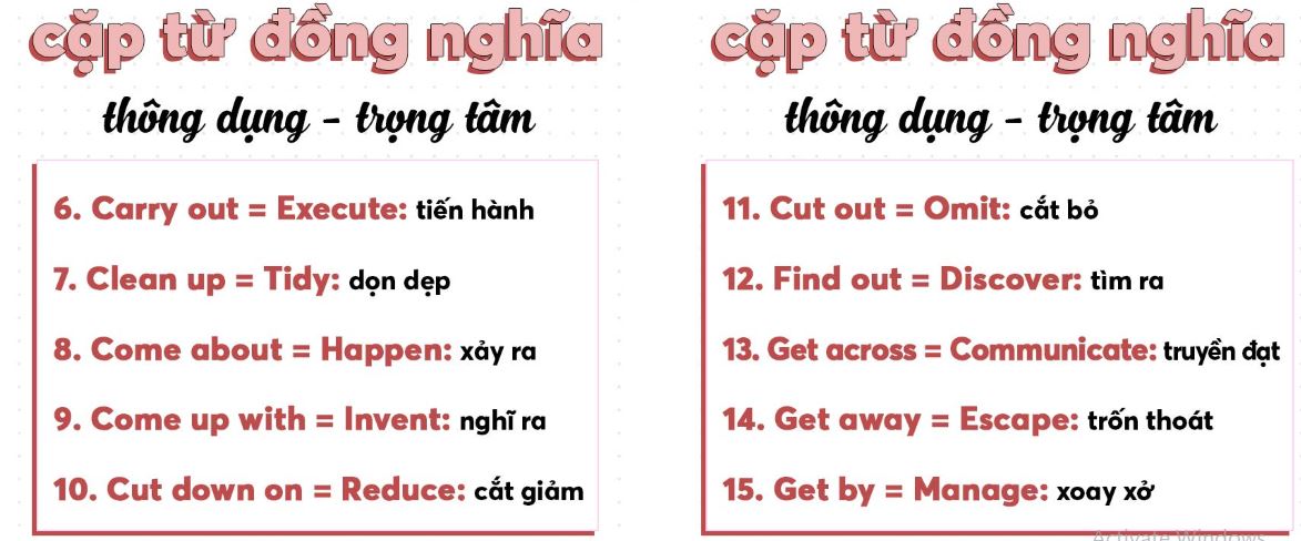 Cụm từ, cụm động từ, cụm giới từ, collocation thông dụng.