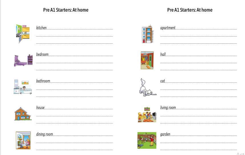 Worksheet Pre A1 Starters là bộ worksheet luyện từ vựng tiếng Anh dành cho học sinh mầm non và tiểu học (mức Pre A1 – Starters).